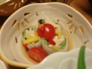 今日の一番は、蒸し鶏絹田巻きですねー。口のなかに入れた途端、うまさがにじみ出てました!\(~o~)/
