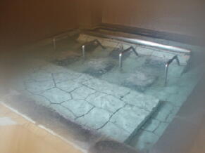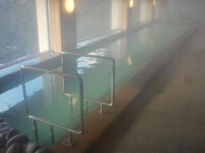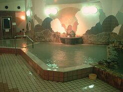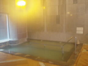 湯槽は、硫黄泉のぬる湯、熱湯、みょうばん泉の湯槽が一つ、35度のジャグジー、サウナがあります。