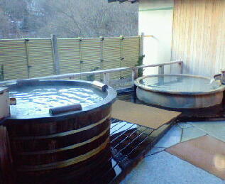 一つ目は、露天付きの大浴場で、内湯が、大きいのが一つ、小さいのが一つ、ジャグジーが一つで、露天は壺湯、陶器湯、普通の露天でした。やはり壺湯が、気持ち良かったですねー。