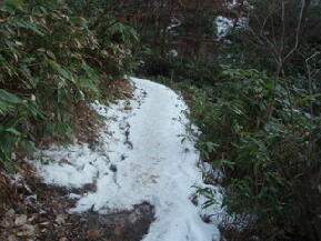 始めは、橋があったり、階段があったんですが、そのうち獣道のようになり、雪が凍ってるのです。