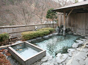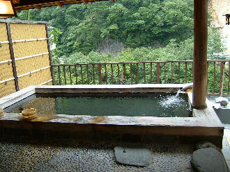 ここの景色は最高です。昼は渓谷の山々が、こっちにせまってくるような迫力で、夜は満点星を見ながら入れます。