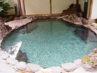 ここのお風呂は、内湯に普通の湯槽が二つ、外に岩露天が一つあります。お湯は適温でなめらかです。岩露天は、3.4人くらいが入ったらいっぱいになる位の広さです。