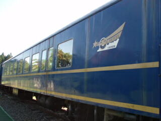 まさか、こんな所にいたとはねー。びっくりです。その後ろに付いてる車両は、ブルートレインで、ホテルになってます。SLホテルって、書いてました。