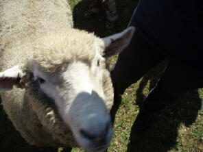 シープドックショーがおわった後に、羊のいる囲いの中に入って、ふれあう事ができたんです。