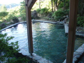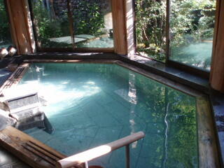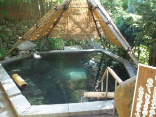 ホテル紫苑も、男女入れ替えです。女性の方は、内湯が少し小さめですが、露天の方が、やはりひとりじめの湯になっていて、陶器の丸くて大きいお風呂でした。小さい気泡がいっぱい出てる絹の湯になってます。泉質は、単純泉です。加水、加温、循環してます。
