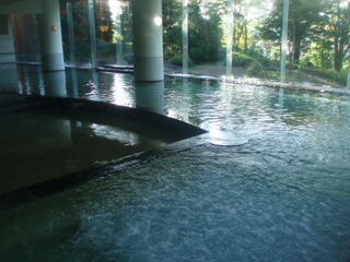 実は、もう一つ大浴場がありまして、そこがまた広いんです。内湯は、真ん中に楕円形の御風呂があり、端のほうには、ジャグジ−と檜風呂があります。