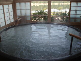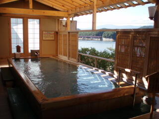 男性用は、船のような形の檜風呂です。今日は、天気なので、御所湖が、特にきれいです。
