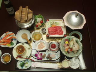 メニューは、ずわい蟹を筆頭に、刺身4種、前菜5種、蟹入りサラダ、煮物、前沢牛のしゃぶしゃぶ、松茸釜飯、寄せ豆腐などてす。