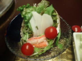前菜の中にあった、トマトが甘くて感動しました。鶯宿で飲んだ、フレッシュトマトジュースの味にそっくりでした。