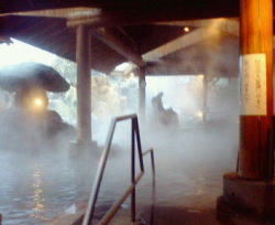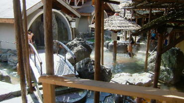 写真でみるように、やっぱり真ん中の大露天はでかいです。混浴風呂の2倍位の大きさです。泉質は、マグネシウム泉で、他に硫黄泉の岩風呂、檜風呂、酒風呂、ハーブ風呂などかあります。サウナも3種類位あります。酒風呂がでかいです。