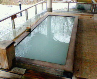 岩露天の方は、お湯がうすい緑色で、茶色い湯の華が、舞ってました。お湯は適温で、気持ちよく入れました。寝湯は、寒いので今回はパスして、山荘のお風呂へ。