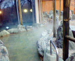 特に、お気に入りは、硫黄泉の岩露天です。お湯も適温で、硫黄の香りが素晴らしく乳白色です。いつもここで、まったりしてます。後は、酒風呂も好きです。でも、いつも満杯です。