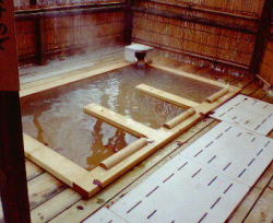 次は、一番お気に入りのオリエンタルガーデンのお風呂ですが、ここは、硫黄泉の檜の浴槽が3つあり、それぞれ広めの大きさで、ゆっくり楽しめます。ここには、弱アルカリ泉の内湯と、サウナもあります。