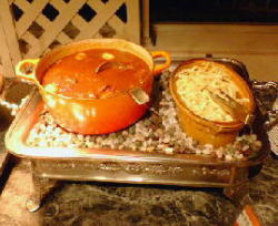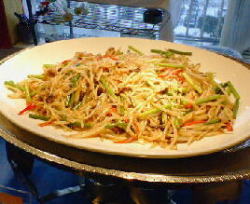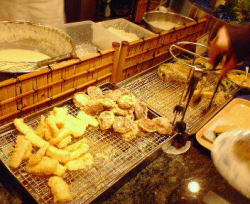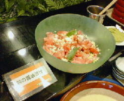 後は、ズワイ蟹大釜茹で、たけの子の木ノめ和え、鰹のたたき、初鰹の黄ピ−マンソ−ス、仔羊もも肉のロースト ハーブ風味、タイ風グリーンカレー 、牛すね肉のトマト煮込みヌイユ添え、サーロインテーキ、五種類の天ぷらなど、おいしいものばかりでした。
