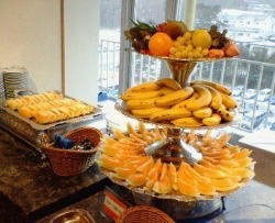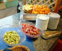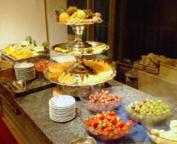 果物は、パパイヤがあったのはびっくりです。後、そのまま食べれるマスカットとか、旬のいちご、赤肉メロンなど最高でした。グレ−プフル−ツ、巨砲、オレンジ、パイナップルもありました。
