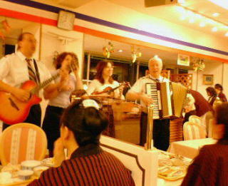 これと、おまけですが、食べてる途中にロシアの人たちが来て、歌を披露してくれます。最後に、日本語で、世界に一つだけの花を歌って大盛り上がりでした。