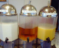 今回は、グレ−プフル−ツジュ−ス、オレンジジュ−ス、アセロラ、アップルジュ−ス、ウ−ロン茶、コ−ヒ−、紅茶、城ワイン、梅酒、コ−ヒ−に入れるヘ−ゼルナッツ、チョコレ−ト、アイリッシュクリ−ム、バニラのシロップがありました。かなりの充実ぶりです。17時まで飲めます。