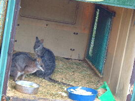 うさぎ小屋で触れ合ったり、ワラビー、エミュなどもいます。ここのうさぎは、座ると3羽くらいがすぐよってきます。人なつっこくて、かわいいですよ-。前は、ワラビーも触れたんだけど、何匹か死んで、今は二匹だけ別の所にいました。
