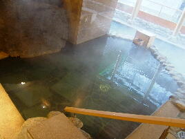 内湯(循環)と小さい岩露天(源泉)