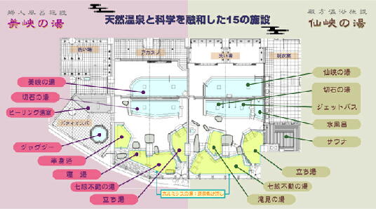 見取り図です。女性のほうが広くて湯船も多めです。