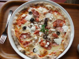 そして、昼飯の時間になったので、釜焼きピザの店に入りました。