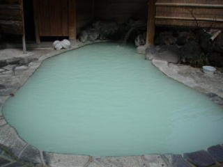 お湯は、玉子湯と同じで硫黄泉です。お湯の色は、乳白色です。手に白い湯の華が、ベタベタつくのがいいです。