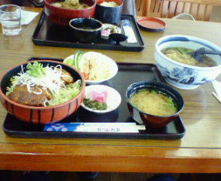 浄土平での食事(ソ−スカツ丼と舞茸そば)