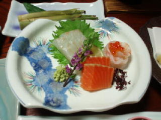 お造りは、鮃、鮭、海老を巻いて真ん中に、いくらを乗っけたものなど、かなり贅沢です。