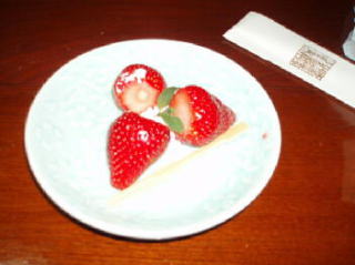 あとは、デザートですが、いちごに生クリームが乗ったものでした。