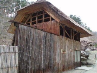 明治元年から使用の茅葺屋根の内湯