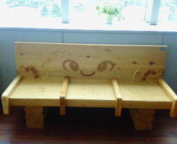 八戸駅の椅子です。イカの形になってました。