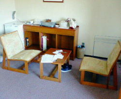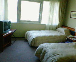 ホテルに帰り、チェックイン。部屋は和洋室で、とても広くきれいで、冷蔵庫も空で、バストイレ、冷暖房完備でした。窓の景色は、野球のグラウンドが見えました。