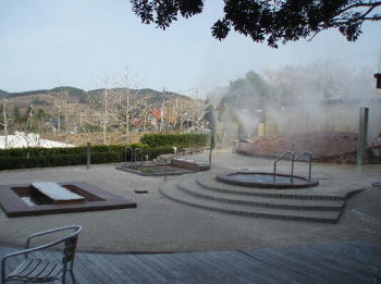 混浴露天は、寝湯、ジャグジー、足湯、噴水風呂、つぼ湯、打たせ湯など、6つの湯槽があり、小規模でした。ただ、30分毎に噴水みたいなのが、出てくるんですよ。天気だと虹ができるのです。