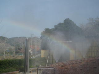 今日は、とりあえず太陽が出てたので、半分虹が出来て、とりあえず写真に収めました。夜は、7色のイルミネーションと共に、音楽が流れて幻想的な空間になります。