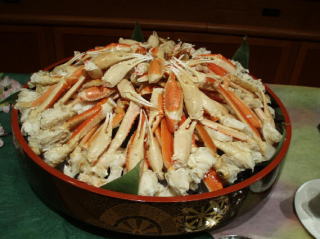 * 料理も和会席とハ−フバイキングで満足。蟹も出る